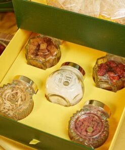 | Combo bao gồm | Tổ yến tinh chế nguyên chất – cao cấp 100g (9 – 10 miếng)01 hũ thuỷ tinh kỷ tử 01 hũ thuỷ tinh táo đỏ 01 hũ thuỷ tinh đông trùng hạ thảo 01 hũ thuỷ tinh long nhãn 01 hộp đường phèn |
