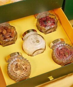 | Combo bao gồm | Tổ yến rút lông thượng hạng – đặc biệt 100g (9 – 10 miếng) 01 hũ thuỷ tinh kỷ tử 01 hũ thuỷ tinh táo đỏ 01 hũ thuỷ tinh đông trùng hạ thảo 01 hũ thuỷ tinh long nhãn 01 hộp đường phèn |