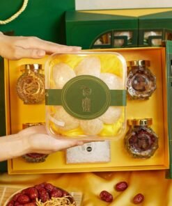 | Combo bao gồm | Tổ yến rút lông thượng hạng – đặc biệt 50g (4 -5 miếng) 01 hũ thuỷ tinh kỷ tử 01 hũ thuỷ tinh táo đỏ 01 hũ thuỷ tinh đông trùng hạ thảo 01 hũ thuỷ tinh long nhãn 01 hộp đường phèn |