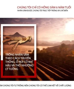 – Được làm từ Hồng Sâm 6 tuổi trồng ở khu vực không bị ô nhiễm trong điều kiện canh tác Hồng Sâm tối ưu (đất sạch, 4 mùa riêng biệt), với hệ thống kiểm soát chất lượng nghiêm ngặt, thu hoạch thủ công, hấp và sấy khô dưới 14% hàm lượng nước.