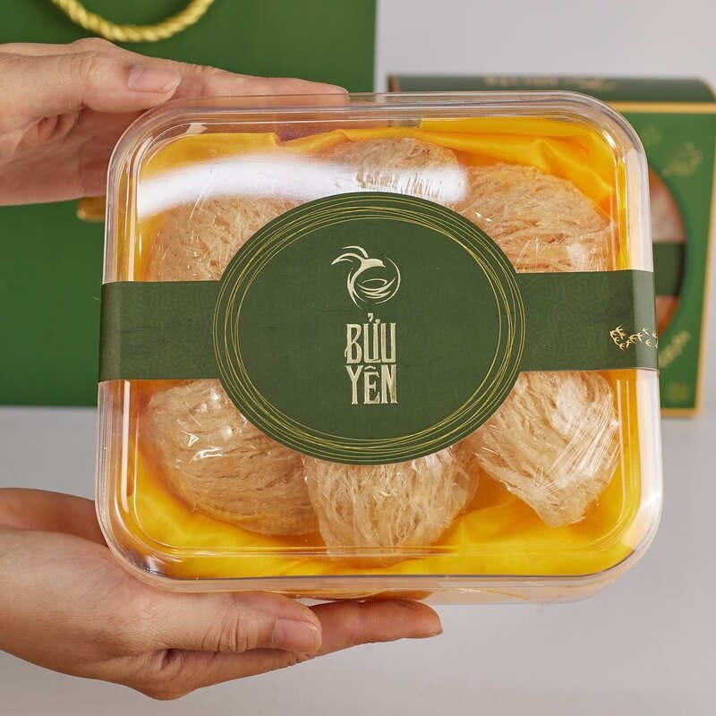 - Các tổ yến được tuyển chọn được xếp cẩn thận trong hộp, tạo sự tinh tế và thể hiện sự quan tâm, trân trọng với người nhận. Đặc biệt với thiết kế hộp sắc xanh đặc trưng thương hiệu Bửu Yến, tạo sự đẳng cấp, sang trọng khi gửi tặng món quà sức khỏe những người thân yêu.