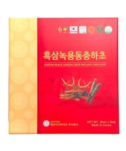 Chiết xuất hỗn hợp thực vật [hàm lượng rắn 1%, nước tinh khiết, cây ngải cứu, táo tàu, thân rễ giần sàng, rễ bạch chỉ, cam thảo, rễ địa hoàng], chiết xuất hồng sâm 22.18% [hàm lượng rắn 60%, xi-rô tinh bột, isomaltooligosacarit, fructose, chiết xuất hồng sâm {hàm lượng rắn 2.2%, hồng sâm 4%}, mật ong], chiết xuất nhung hươu 0.1% [hàm lượng rắn 0.1%, nước tinh khiết, nhung hươu 0.3%], nấm linh chi cô đặc 0.1% [hàm lượng rắn 60%], hắc sâm cô đặc 0.1% [hàm lượng rắn 60%], hương liệu tổng hợp (hương thảo mộc), chất điều chỉnh độ acid (citric acid), vitamin C.