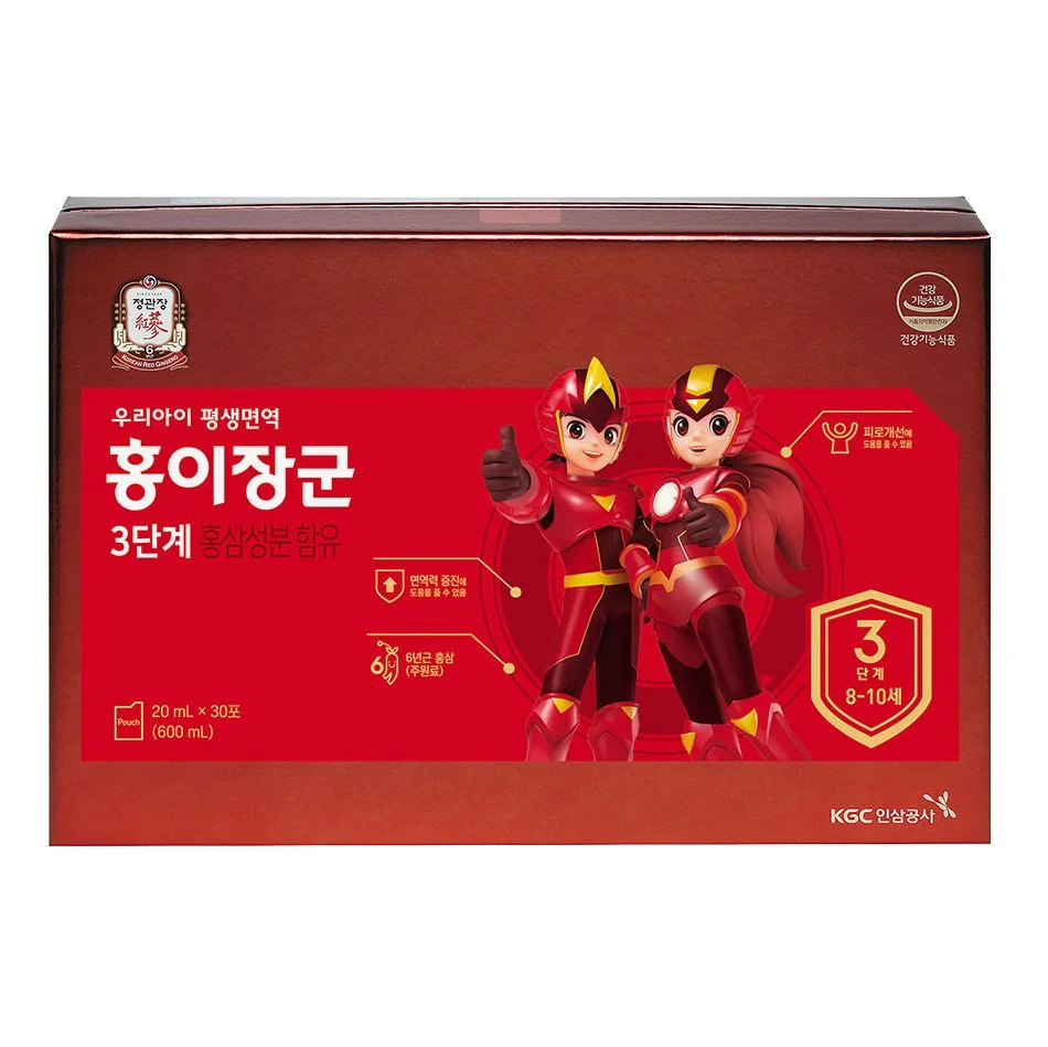 – Hồng sâm đậm đặc 6 năm tuổi nguyên chất, hàm lượng Rg1 + Rb1 + Rg3 5,5mg / g, nhung hươu, nước tinh khiết, hỗn hợp đậm đặc hoa quả tự nhiên lên men, vitamin C, Hương vị sữa chua tự nhiên, vitamin B6 , vitamin B2 , vitamin B1 và các lợi khuẩn có ích cho hệ tiêu hóa….