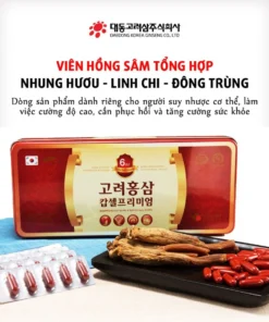 – Chiết xuất hồng sâm (Ginsenoside Rg1, Rb1 & Rg3 7mg/g, Hàn quốc) chiếm 20%, dầu đậu tương (Đài Loan), dầu cọ (Malaysia), sáp ong (Hà Lan), chiết xuất nhung hươu, chiết xuất nấm linh chi, chiết xuất đông trùng hạ thảo (Paecilomyces Japonica).